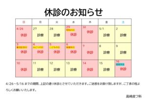 2026.02.24 【4月】休診のお知らせ